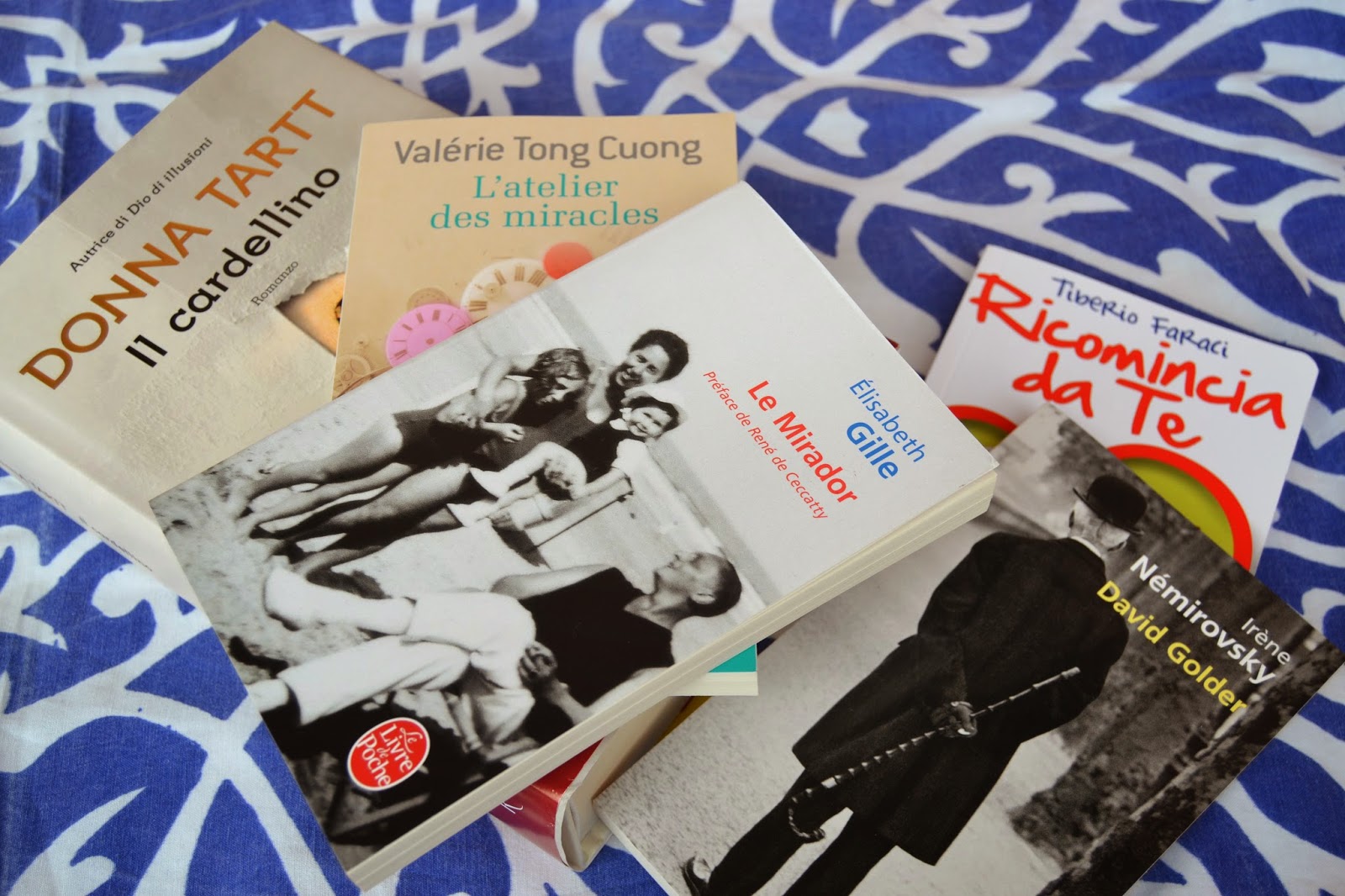 Visto il numero di pagine dell’ultimo bestseller di Donna Tartt, Il cardellino, forse leggerò solo quello…..ho comperato anche un libro di Valérie Tuong Cuong, L’atelier des miracles, di cui avevo letto delle recensioni molto positive; porterò con me anche David Golder, il primo libro di Irene Némirovsky, che è una delle mie scrittrici preferite, e la biografia sempre di Irene Némirovsky che ha scritto sua figlia, Le Mirador.E poi ho preso anche un libro di Tiberio Faraci sull’importanza del perdono: questo fa parte di un mio cammino di vita che ho intrapreso circa un anno fa e che sto faticosamente portando avanti.