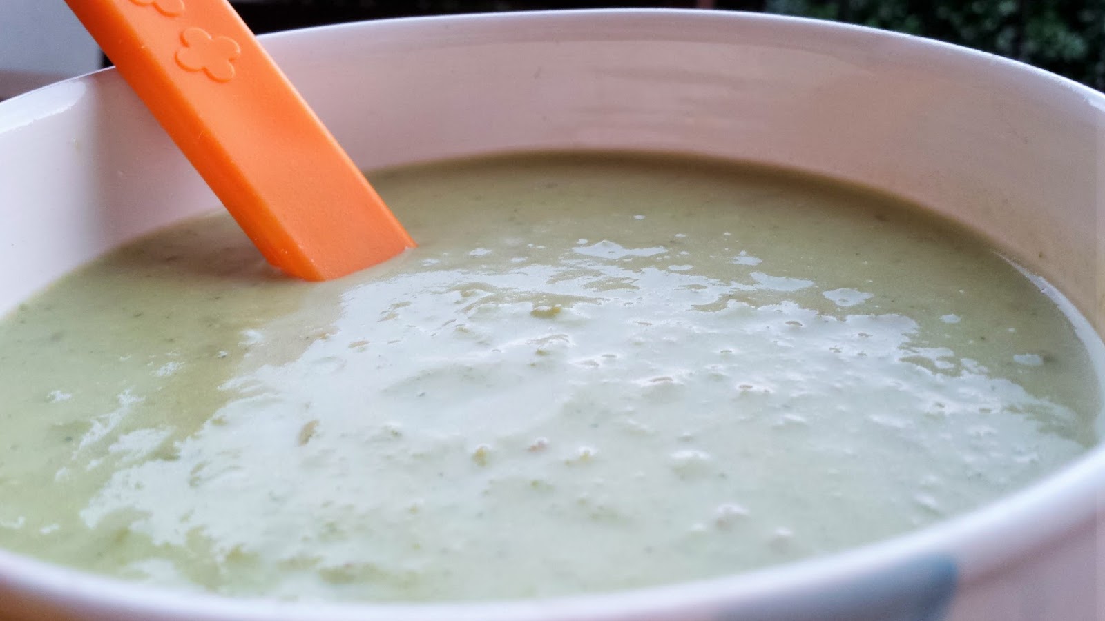 Sgranare le fave ed i piselli. Io ho cucinato le fave con la loro pellicina perché trattandosi di fave dell’orto, rigorosamente biologiche non mi andava di scartare anche la pellicina. Tagliate a cubotti le zucchine. Affettate finemente il cipollotto. Nella pentola a pressione scaldate un filo di olio, lasciate andare il cipollotto e poi le verdure. Rosolate il tutto. Aggiungete l’acqua sino a coprire le verdure. Cuocete 5 minuti da quando la pentola a pressione comincia a fischiare. Se non utilizzate la pentola a pressione, cuocete per 20 minuti circa. Frullate il tutto. A questo punto avete due alternative: dopo aver frullato le verdure otterrete un composto cremoso al quale mescolerete la creme fraiche; in questo caso però, avrete una texture non completamente liscia perché è inevitabile che rimanga qualche pellicina sotto al palato sfuggita al frullatore ad immersione. In alternativa potete passare col cinese la vellutata, in questo caso unirete la creme fraiche alla vellutata in un secondo momento: se dovete dare la vellutata ad un bimbo, questa seconda ipotesi è senz’altro da privilegiare. Aggiustate di sale. Servite condita da un filo di olio ed una spolverata di parmigiano. E’ ottima anche fredda.